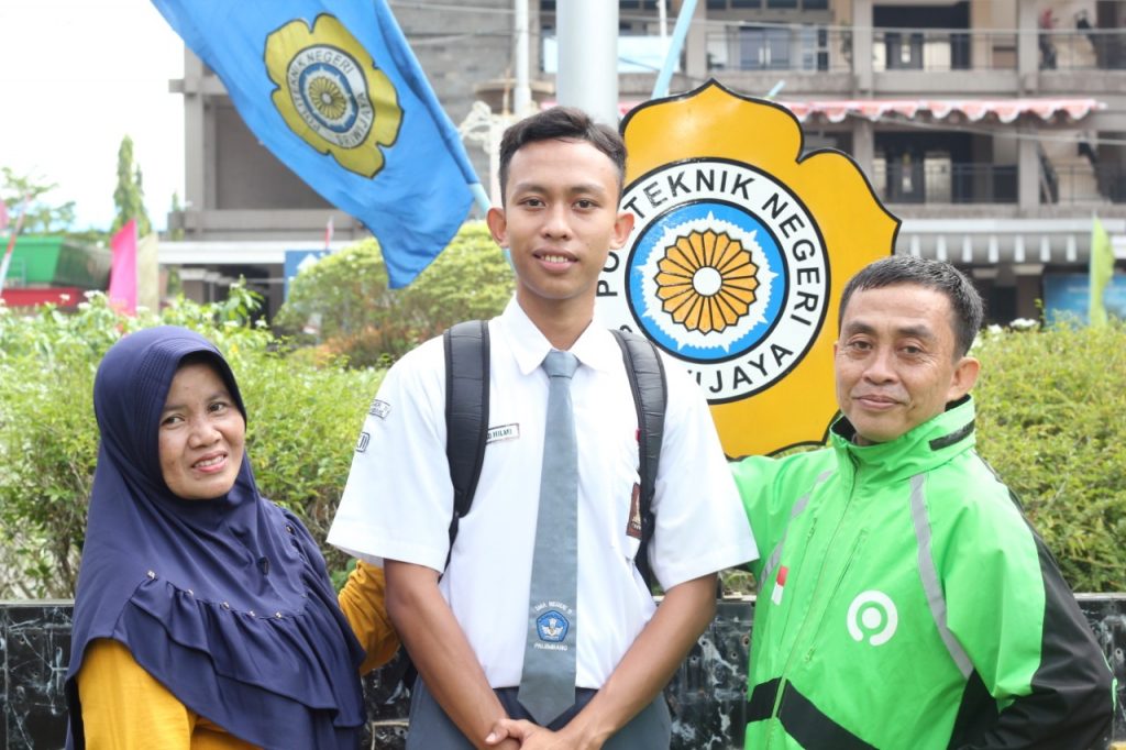 Muhamad Hilmi selaku salah satu penerima program Beasiswa Gojek 2020 yang kini merupakan mahasiswa jurusan Teknik Elektronika di Politeknik Negeri Sriwijaya memberikan testimoni.