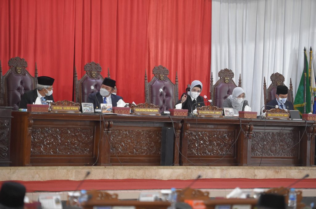Selanjutnya, Gubernur menjelaskan dalam Raperda Perubahan APBD TA 2021 ditetapkan sebesar Rp.11.512.587.341.871,50 mengalami peningkatan sebesar 6,29% dibanding sebelum perubahan sebesar Rp.10.831.506.013.693,00. Dengan rincian: