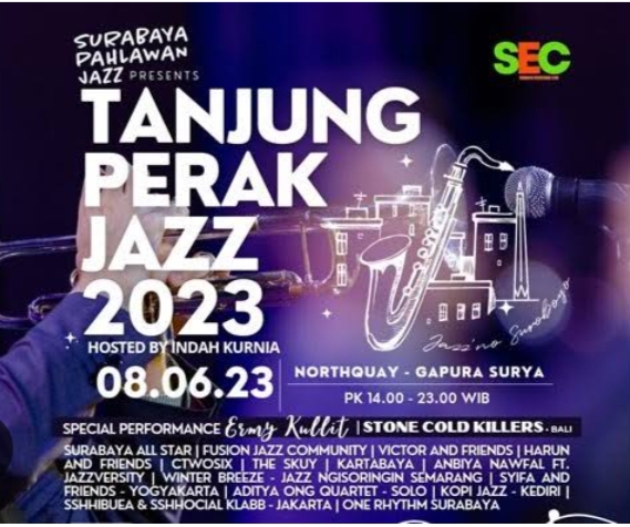 SURABAYA, Tanjung Perak Jazz (TPJ) 2023 digelar pada 8 Juni 2023. Event yang dihelat oleh Surabaya Pahlawan Jazz (SPJ) untuk ke-4 kalinya ini siap menghibur para pecinta musik Jazz di Surabaya North Quay (SNQ). Tahun ini, Tanjung Perak Jazz akan kedatangan tamu spesial yang dipastikan bakal menambah kegaharan panggung jazz. Yakni Ermy Kullit dan Stone Cold Killers.