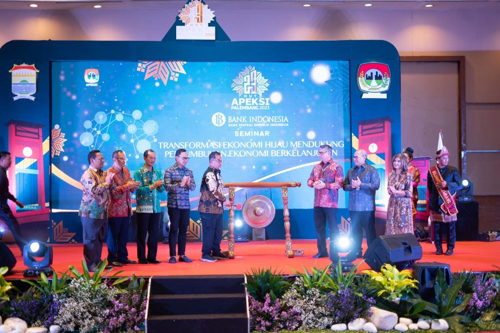 Palembang – Kantor Perwakilan Bank Indonesia Provinsi Sumatera Selatan bersama dengan Pemerintah Kota Palembang menyelenggarakan Seminar Nasional yang mengusung tema “Transformasi Ekonomi Hijau Mendukung Pertumbuhan Ekonomi Berkelanjutan” (7/6). Kegiatan ini merupakan salah satu bagian dari rangkaian acara peringatan Hari UlangTahun (HUT) Asosiasi Pemerintah Kota Seluruh Indonesia (APEKSI) ke-23 di Kota Palembang.