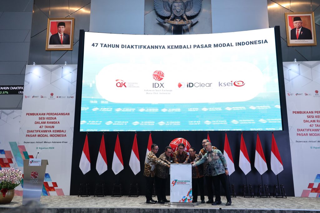 Otoritas Jasa Keuangan (OJK) bersama Self-Regulatory Organization (SRO) yang terdiri dari PT Bursa Efek Indonesia (BEI), PT Kliring Penjaminan Efek Indonesia (KPEI), dan PT Kustodian Sentral Efek Indonesia (KSEI), memperingati 47 Tahun Diaktifkannya Kembali Pasar Modal padaSenin, 12 Agustus 2024. Acara ini diselenggarakan secara hybrid yang dibuka dengan Seremoni Pembukaan Perdagangan Sesi ke-2 dan dilanjutkan dengan Konferensi Pers oleh OJK bersama SRO.