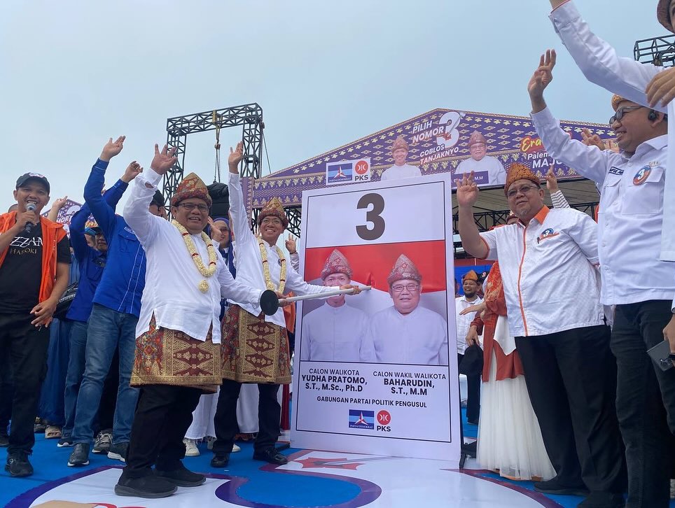 Palembang, Minggu (17/11/2024) — Ribuan pendukung pasangan calon Wali Kota dan Wakil Wali Kota Palembang nomor urut 3, Yudha Pratomo dan Baharudin, tumpah ruah memenuhi Pelataran Benteng Kuto Besak (BKB) Palembang. Kampanye akbar yang juga dikemas dalam Festival Palembang Maju ini berlangsung meriah dan tertib.