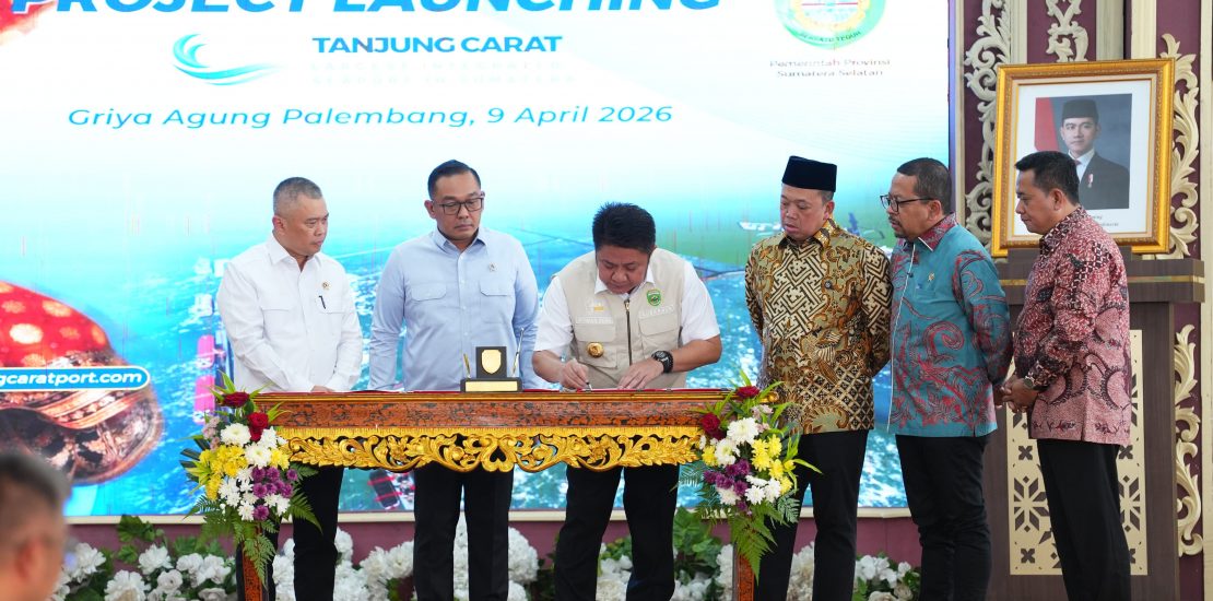 Palembang – Gubernur Sumatera Selatan (Sumsel), Dr. H. Herman Deru, menegaskan komitmennya menghadirkan pelabuhan samudera di Sumsel pada 2028 atau paling lambat 2029. Hal itu disampaikannya dalam acara Project Launching Pelabuhan Palembang Baru di Tanjung Carat, Kabupaten Banyuasin, yang digelar di Griya Agung, Kamis (9/4/2026) pagi.